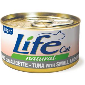 LifeCat Natural Adult - Alimento umido per gatti al Tonno con Alicette, 6 x 85 g