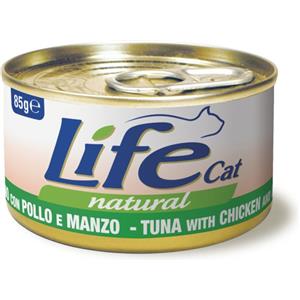 LifeCat Natural Alimento Umido per Gatti - Tonno, Pollo e Manzo - Lattina da 85 gr
