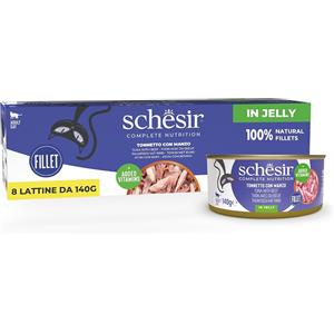 Schesir Alimento Umido Completo per Gatti - Tonnetto con Manzo in Brodo, 6 x 85 g, 100% Naturale con Vitamine Aggiunte