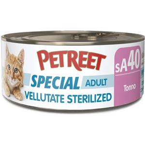 Petreet Cibo Umido per Gatti Sterilizzati al Tonno - Lattina da 70g, Alimento Completo e Naturale