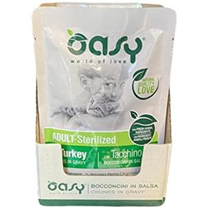 Generico Oasy Bocconcini in salsa per Gatti adulti sterilizzati gusto Tacchino. Confezione da 12 bustine (1 bustina = 85 gr.) Formulato senza glutine