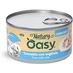 Oasy Gatto Natury - Cibo Umido Tonnetto con Sogliola in Brodo di Cottura 85g per Gatti Adulti