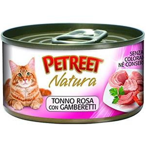 Petreet Natura Tonno Rosa per Gatto in Confezione da 6 x 70 gr Gusto A03 - Tonno Rosa e Gamberetti
