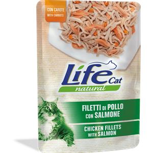 Life Cat Natural Filetti di Pollo con Salmone e Carote - Alimento Umido per Gatti Adulti, 70 gr