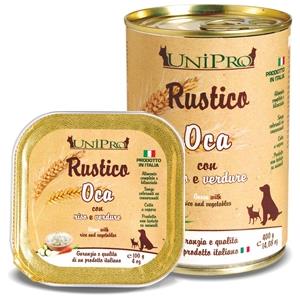 Unipro Rustico Cibo Umido per Cani con Oca, Riso e Verdure - Vaschetta da 100g