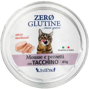 Unipro Mousse e Pezzetti al Tacchino per Gatti Adulto Sterilizzato - Senza Glutine - Vaschetta da 85g