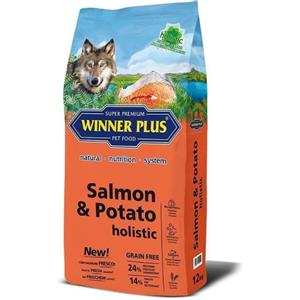 Winner Plus - Alimento Olistico per Cani al Salmone e Patate 12 kg, Senza Glutine e Ideale per Cani Sensibili