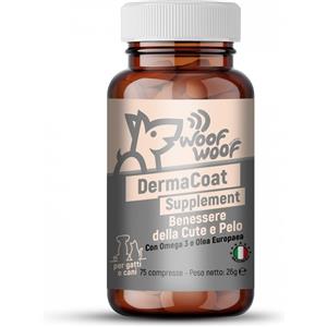 Woof Woof DermaCoat Supplement - Integratore per Cani e Gatti con Omega-3 e Biotina per Pelle Sana e Pelo Splendente - 75 Compresse