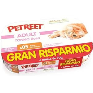 Petreet Natura Tonno Rosa e Carote - Cibo Umido per Gatti Adulto, 6 Lattine da 70 Gr, Senza Coloranti e Conservanti