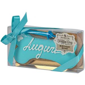 DoggyeBag Torta di Compleanno per Cani 85g - Biscotto a Forma di Osso con Glassa allo Yogurt, Fatto a Mano e Candelina Inclusa