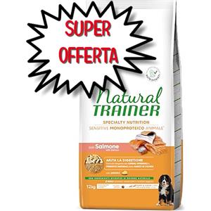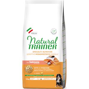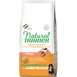Natural Trainer Speciality Nutrition Sensitive Monoproteico Medium&Maxi Puppy e Junior con Salmone e cereali integrali 12 kg - Crocchette monoproteiche cane - 1° ORDINE? fino al 20% di sconto