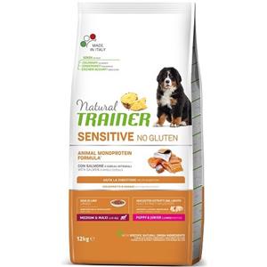 TRAINER NATURAL CANE SENSITIVE NO GLUTEN MEDIUM MAXI PUPPY JUNIOR SALMONE 12KG