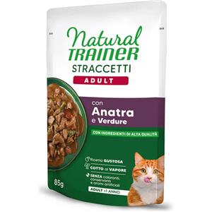 Trainer Natural Straccetti di Anatra e Verdure per Gatti Adulti - 85 g Bustina, Cibo Umido Completo e Senza Coloranti