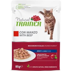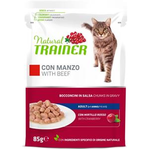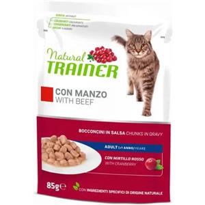 Natural Trainer Adult Bocconcini in salsa 85 gr Manzo - confezione da 12 pezzi - Cibo umido per gatti - 1° ORDINE? fino al 20% di sconto