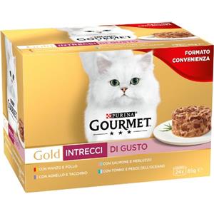 Purina Gourmet Gold Intrecci di Gusto - Cibo Umido per Gatti, Multipack 24x85g Mix Carne e Pesce in Alimenti Cani e Gatti