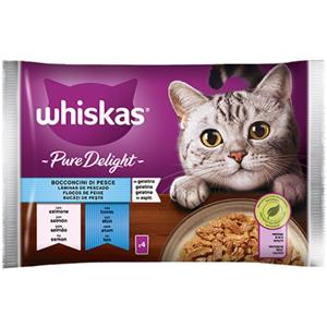 Whiskas Pure Delight Cibo Umido per Gatti - Bocconcini di Pesce in Gelatina con Salmone e Tonno, Confezione da 4x85g