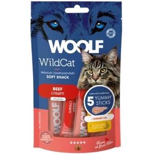 Woolf Wildcat Snack Liquidi per Gatti - Gusto Manzo e Olio di Gamberetti, 5x14g, 100% Naturali