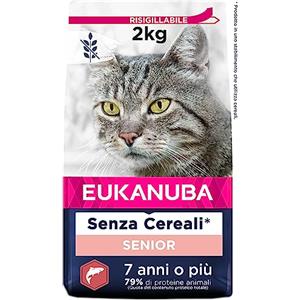 EUKANUBA Grain Free Cibo Secco per Gatti Anziani al Salmone - 2 kg, Ricco di Proteine Animali