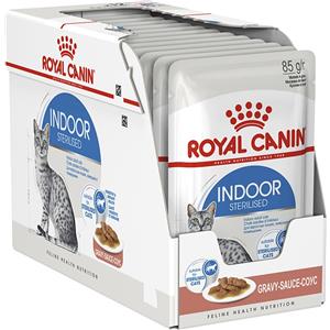 Royal Canin Indoor Sterilised in Sauce | 12 x 85 g | Alimento completo per gatti adulti che vivono in casa | Per gatti sterilizzati | Bocconcini in salsa