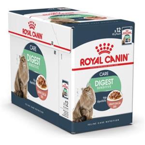 Royal Canin Digest Sensitive Wet Food | 12 x 85g | Alimento completo per gatti adulti | Può aiutare a ridurre l'odore delle feci | Bocconi in salsa