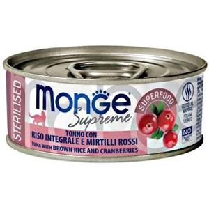 Monge Supreme Cibo Umido per Gatti Sterilizzati - Tonno, Riso Integrale e Mirtilli Rossi - 80g