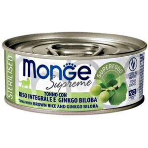 Monge Supreme Cibo Umido per Gatti Sterilizzati con Tonno, Riso Integrale e Ginkgo Biloba - 80g