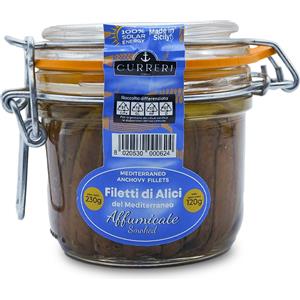 Curreri Filetti di Alici Affumicate Sott'Olio - 230g, Lavorati a Mano in Vaso Ermetico