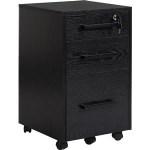 HOMCOM Cassettiera Portadocumenti da Ufficio con 3 Cassetti, Serratura e Ruote, in Legno, Nero, 39.2 x 40 x 65.4cm