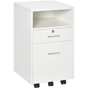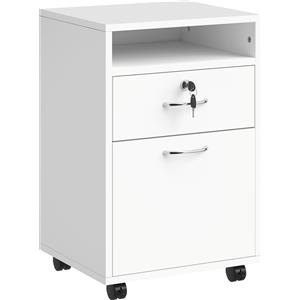 Vinsetto Cassettiera da Ufficio Bianca con 2 Cassetti, Ripiano Aperto, Serratura e 5 Ruote