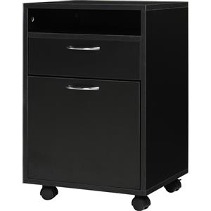 HOMCOM Cassettiera da Ufficio in Legno e Metallo, 2 Cassetti e Ripiano Aperto, 4 Ruote, 40x35x60 cm, Nero