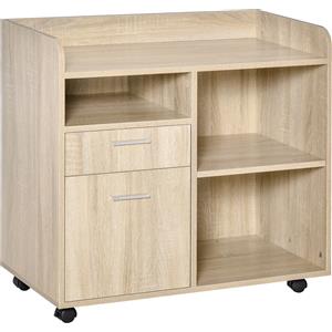 Vinsetto Mobile Porta Stampante Multiuso con 4 Ruote in Rovere - 80x40x72cm, Due Cassetti e Tre Ripiani