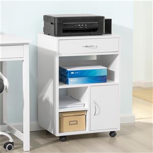 SoBuy FBT106-W Tavolo Stampante con Cassetto e Porta File, Cassettiera Ufficio Salvaspazio con Ruote e Ripiani, Bianco