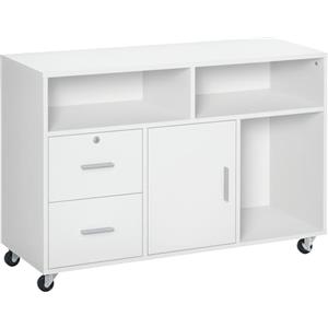 HOMCOM Vinsetto Mobiletto da Ufficio Multiuso Bianco con Serratura, 2 Ante e Mensola Interna in Legno, 80x40x80cm