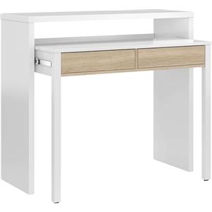 Habitdesign Scrivania Estensibile 99x36x88 cm in Bianco e Rovere, Salvaspazio e Multifunzionale