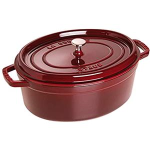 STAUB Cocotte Ovale in Ghisa 31 cm, 5.5 Litri, Rosso Granata - Perfetta per Rosolare e Stufare