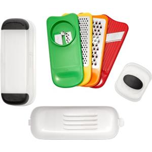 OXO Good Grips Set Spiralizzatore, Grattugia Alimentare e Mandolina Multiuso con Contenitore - Accessori Cucina Multifunzionali