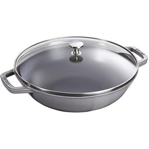 Staub Wok in Ghisa 30 cm - Versatile per Scottare, Brasare e Cuocere al Vapore