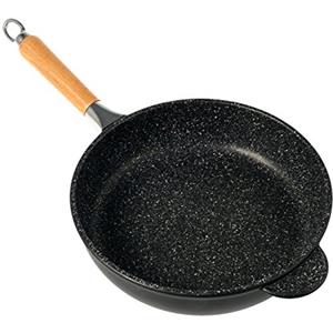 Home H&H Padella Alta Antiaderente in Pietra con Manico in Legno - 32 cm, Nero