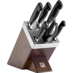 ZWILLING Four Star Set di Coltelli con Ceppo Autoaffilante in Legno di Frassino, 7 Pezzi, Acciaio Inox