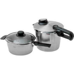 Fissler Set da 5 pezzi: Pentola a pressione Vitavit Premium 6 l e Padella a cottura rapida 3.5 l con coperchio in metallo
