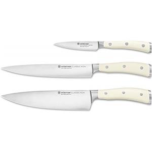 Wüsthof Set di Coltelli Classic Ikon Crème - 3 Pezzi con Coltello da Chef, Coltello Multiuso e Coltello da Paring