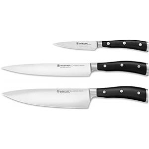 WÜSTHOF Classic Set di 3 Coltelli da Cucina in Acciaio Inossidabile con Manici in Plastica Nera in Tavola e Cucina