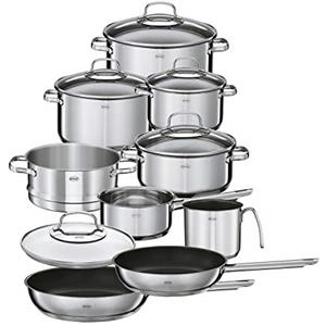 RÖSLE Elegance Set di Pentole 10 pz in Acciaio Inox 18/10 con 6 Pentole, 1 Inserto per Cottura a Vapore e 2 Padelle, Adatto per Lavastoviglie e Piani Cottura a Induzione