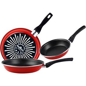 MAGEFESA Grana Set di 3 Padelle in Acciaio Smaltato Rosso (18, 20, 24 cm) con Antiaderente e Adatte per Induzione