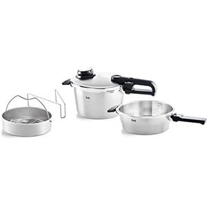 Fissler, Set da 4 pezzi con pentola a pressione Vitavit Premium 4.5 L, diametro 22 cm, con padella a cottura rapida 2.5 l , diametro 22 cm, con coperchio in metallo, per cottura a induzione