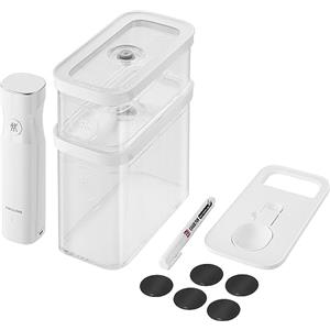 ZWILLING Fresh & Save CUBE Set di avviamento per sottovuoto M - 5 pezzi, trasparente e bianco con 2 contenitori, pompa a vuoto, misurino ed etichette NFC