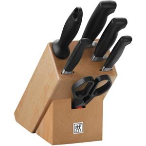ZWILLING Four Star Set di Coltelli con Ceppo Autoaffilante in Legno di Frassino, 7 Pezzi, Acciaio Inox
