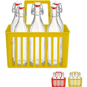 PALUPLUS Set 6 Bottiglie in Vetro da 1 Litro con Cestello Giallo Impilabile e Tappo Ermetico