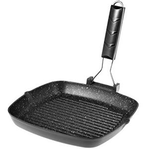 ILSA Bistecchiera Marmorella Quadrata 26 cm in Alluminio Pressofuso con Rivestimento Antiaderente Effetto Pietra