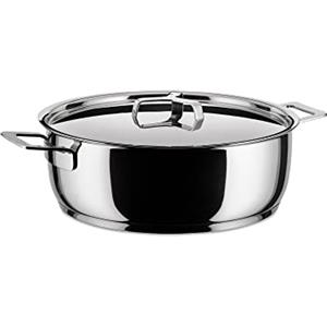 Alessi Casseruola Bassa Pots&Pans 28 cm in Acciaio Inossidabile 18/10 con Due Manici e Fondo Induzione